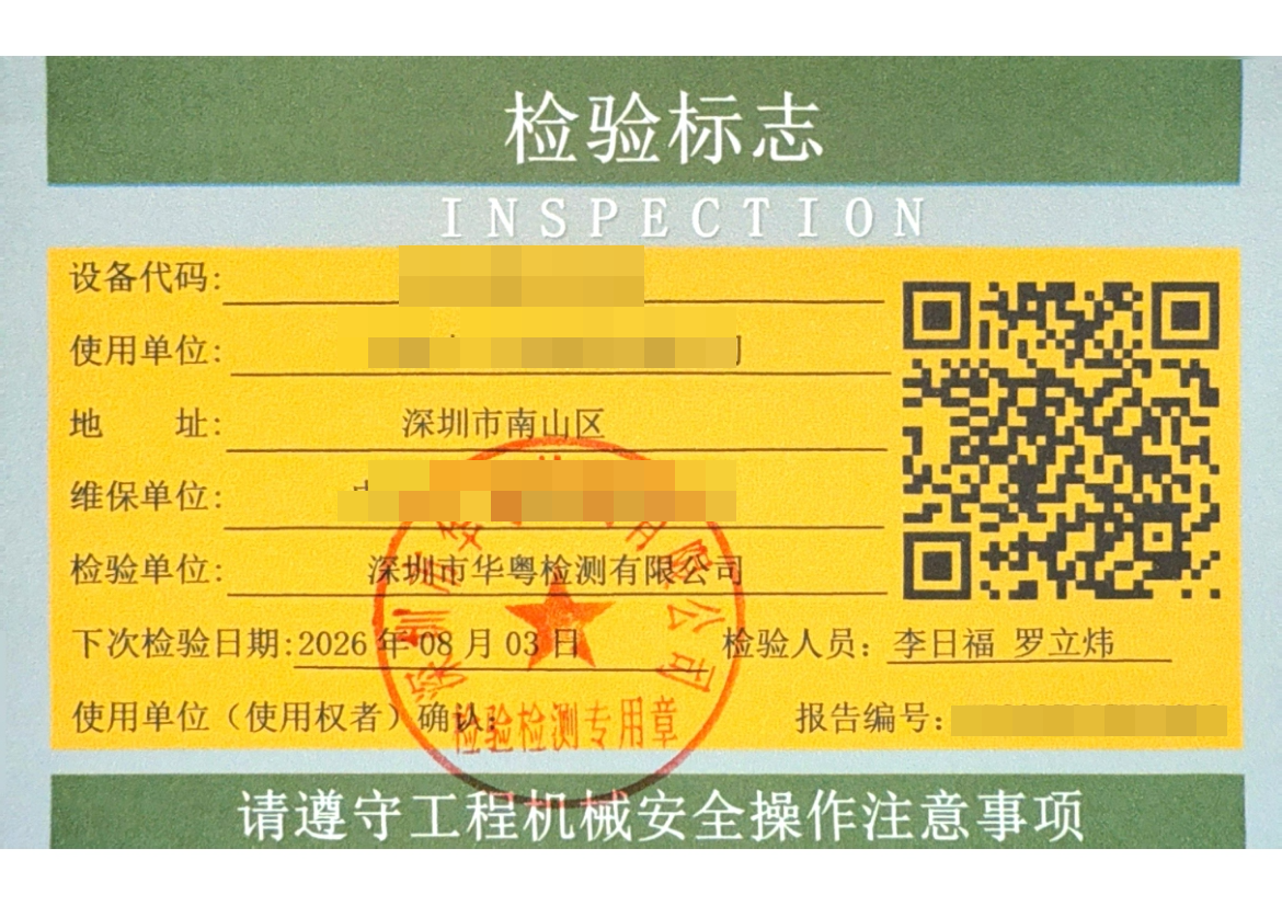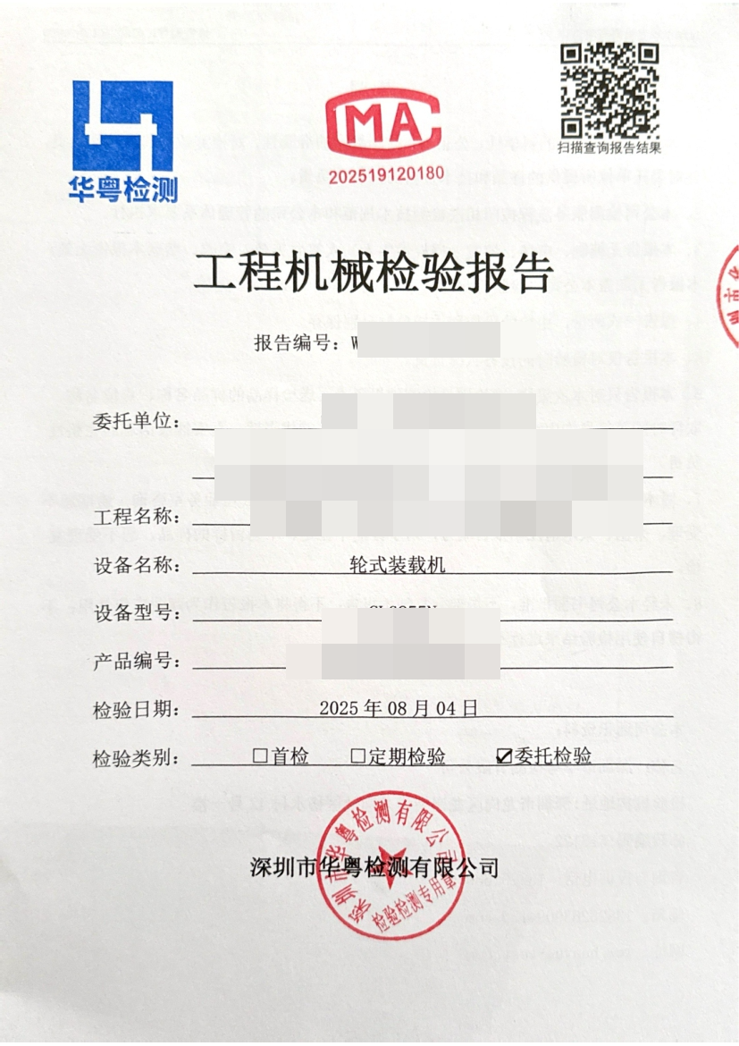 我司提供工程机械检验服务,内容涵盖装载机、挖掘机、旋挖钻机等各类工程机械。我们拥有一支专业的检测团队,具备丰富的行业经验和精湛的技术能力,能够为客户提供高效、准确的上门检测服务。检测过程严格遵循相关标准和规范,对工程机械的性能、安全等方面进行全面检测,其中针对旋挖钻机,我们亦有回转速度,爬坡能力、主副卷扬升降速度、行走直线性、制动性能等在内的多项CMA认证的性能检验资质。我们承诺在确保检测质量的基础上,于一个工作日内出具详细的检验报告,并颁发对应的安全标志卡,为客户提供便捷、可靠的服务,保障工程机械的安全使用,助力客户提升工作效率和安全生产水平。
